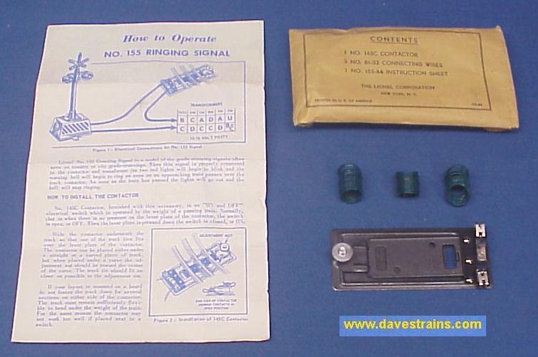 Includes the original packing envelope #161-31 that was NEVER OPENED! It contains the instruction sheet #161-32, the #3330-102 cement capsule, the #161-17 mail bag, the #161-23 magnet, the #90 controller and three connecting wires! The envelope is very, very nice and it is the nicest one we have ever seen!