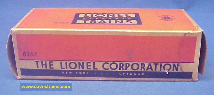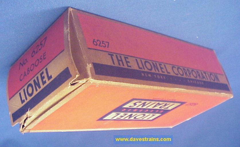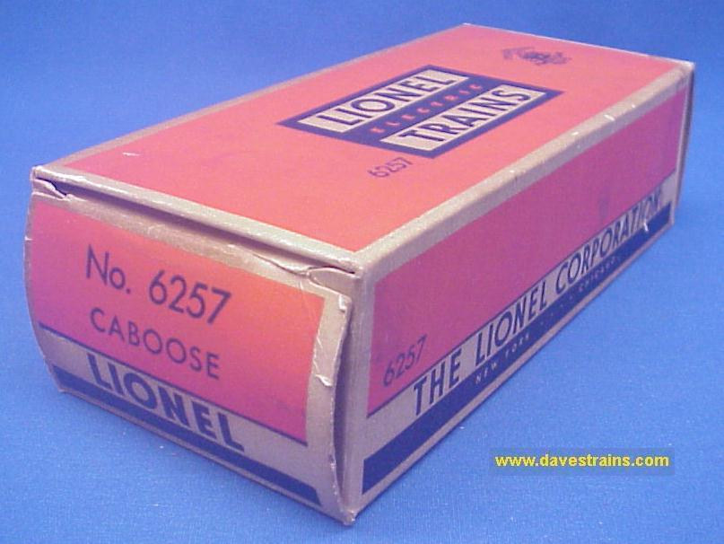 Note that Lionel sometimes (but not always) packaged this caboose with a "6257-25" box.