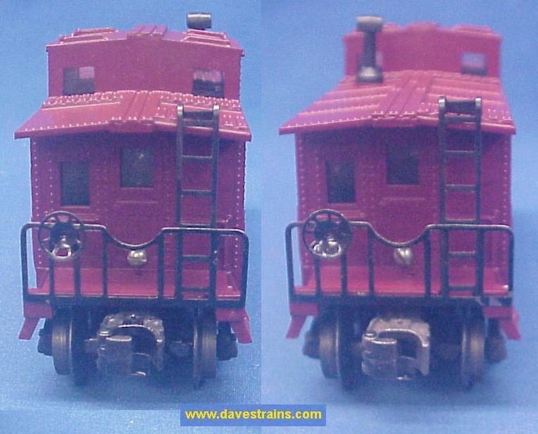 Illuminated, maroon-painted (NOT brown) SP-type caboose from 1952 only: has bar-end trucks with magnetic couplers.