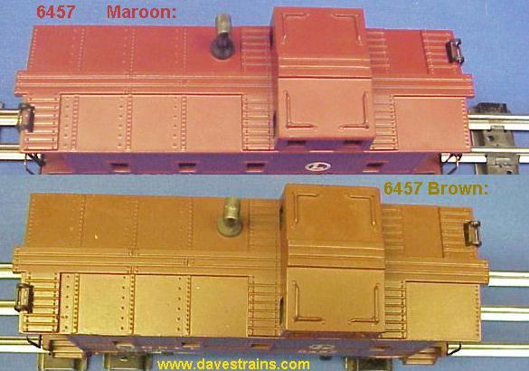A good-looking, one-year-only caboose that does not show up that often and in a very scarce box! Check your collection! We have had many, many brown 6457 cabooses over the years but very few maroon ones.