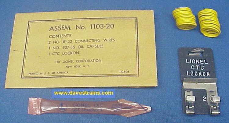 Set includes the correct original envelope #1103-21 (assembly 1103-20) which contains two unused (still coiled) connecting wires, an unopened #927-85 oil capsule and a CTC lockon. |