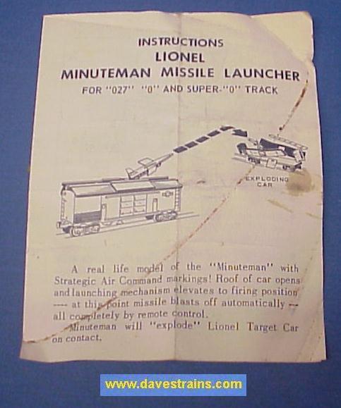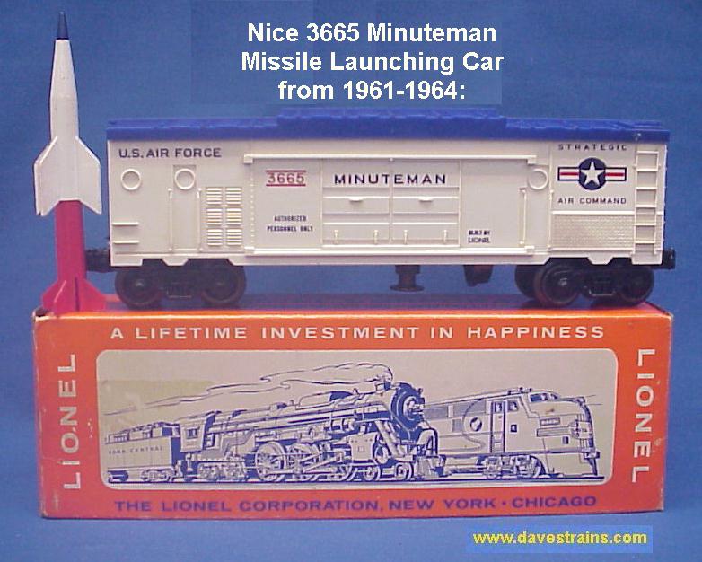 Postwar Lionel Space & Military Cars Catalog # Item Grade Photo Price Description & More Information 3665 Minuteman