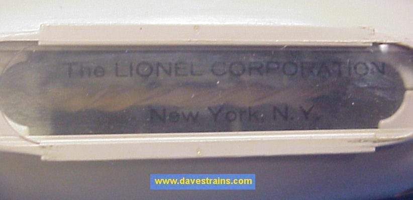 Photo of the original "LIONEL" ID plate ("bottom window") below the sub.