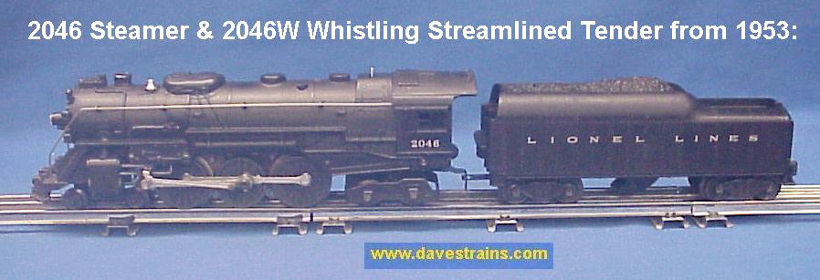 Large 4-6-4 Steamer from early 1952: has the correct "LIONEL LINES" 2046W whistling, streamlined-type tender.
