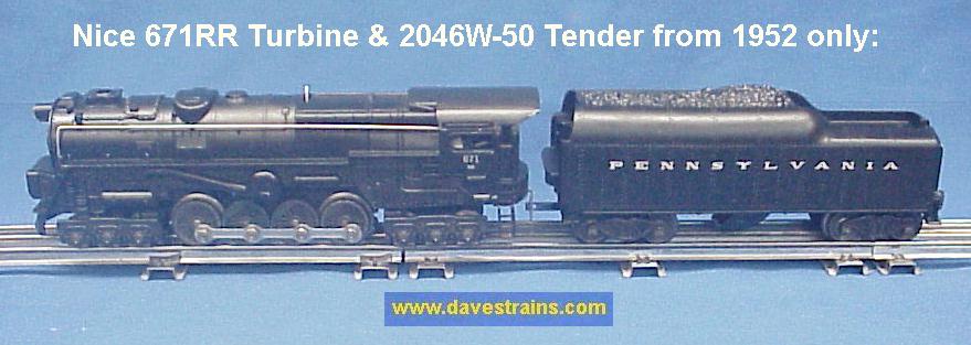 Check your collection; this is only the third 671RR Turbine/2046W-50 Tender combination we have ever had for sale! This 1-year-only engine is not that easy to find.