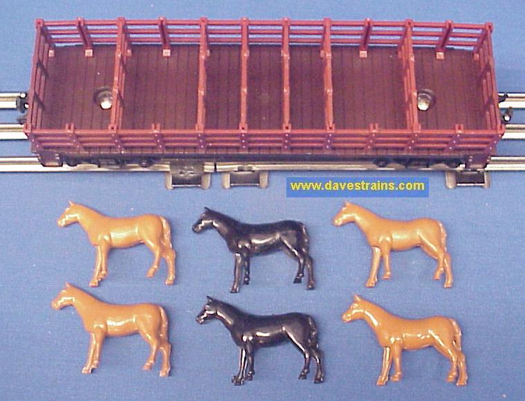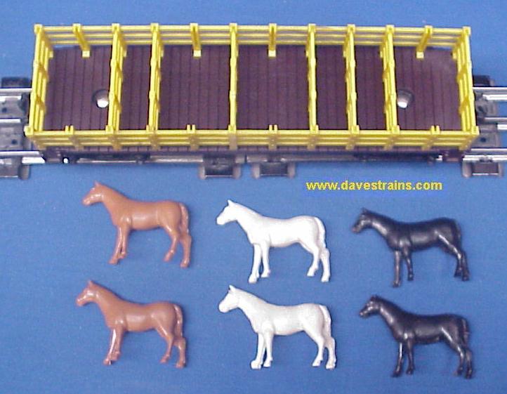 Includes six reproduction horses (4 brown and 2 black). Note that the correct color combination of horses is two black, two brown and two white. Has the correct maroon (reproduction) fencing.
