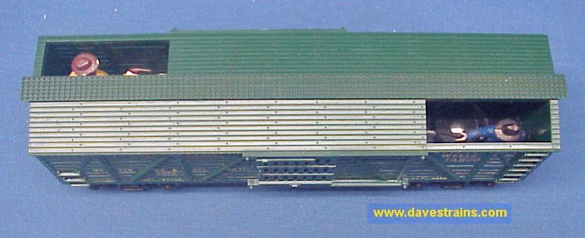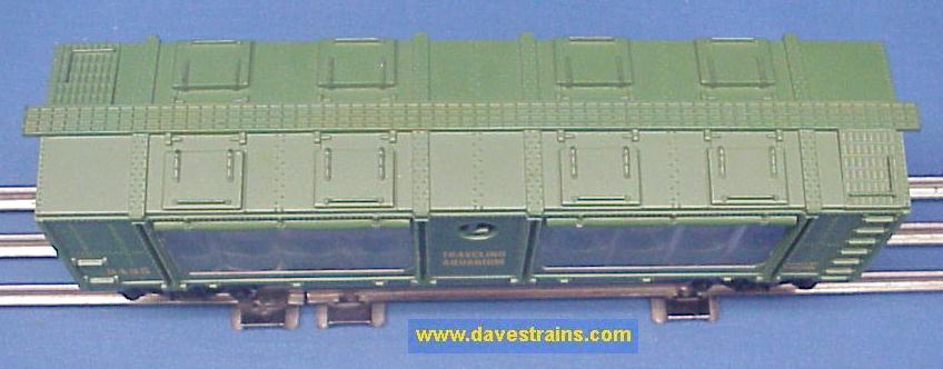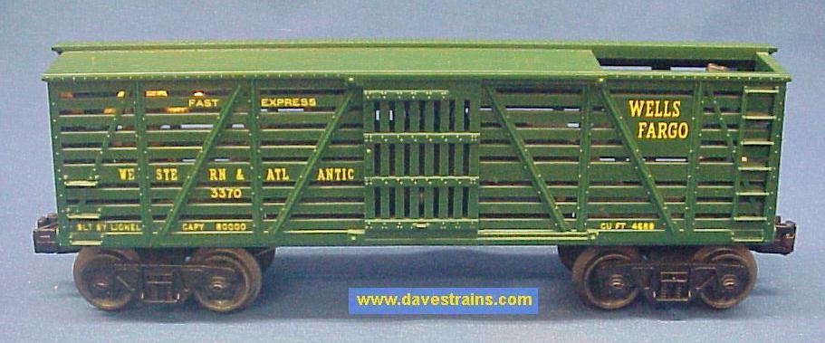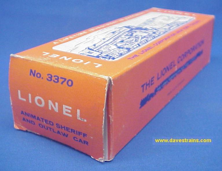 Note that this car is the early-production (and more desirable) version since it has all of the simulated plastic rivets around the doors. Lionel had a problem with the 3370 mold in later years and many (most?) of the 3370s have one rivet missing.