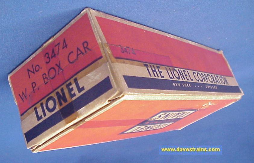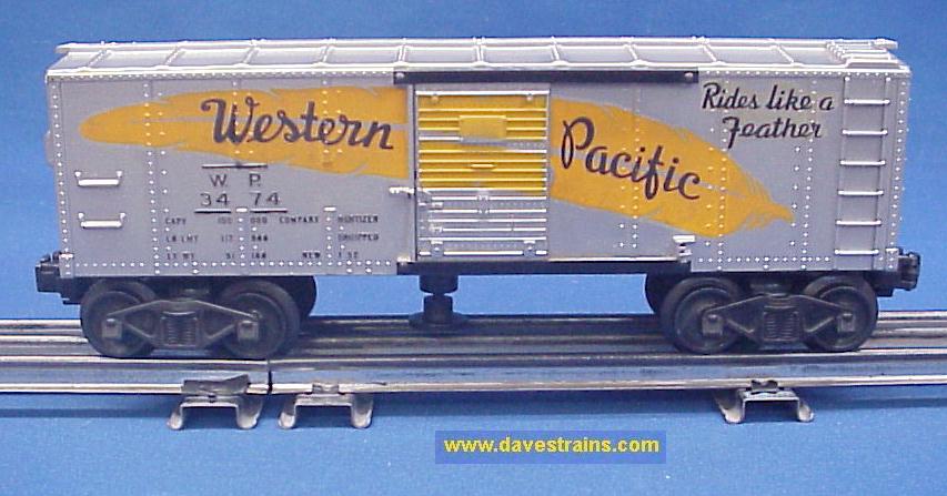 The 3474 Western Pacific Boxcar was sold in 1952 and 1953 but the smaller man, instruction sheet version and the non "OPS" box all help to date this item as a 1953 car.