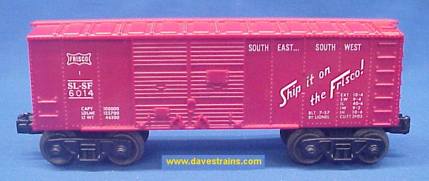 This page contains our current inventory of Postwar Lionel freight cars. Included here are boxcars, refrigerator cars, stock cars, certain flatcars, gondolas, hoppers, tank cars and vat cars. Specialty cars from the "Space & Military" Series are located on our Space & Military Cars web page while crane cars, searchlight cars and other work train pieces of rolling stock are located on our Railroad Work Cars web page and cabooses and work cabooses are located on our Cabooses web page.