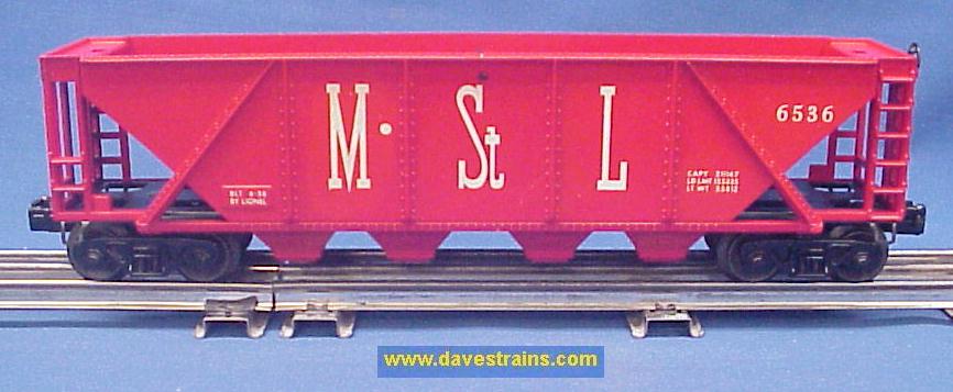 A very attractive piece of rolling stock -- one does not appear in the market place very often. Note that most of the M & St. L quad hoppers were packed loosely in sets.