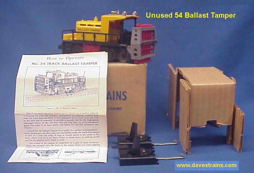 A Ballast Tamper that was NEVER USED! This very clever, all original motorized unit was produced from 1958-1961 and in the late '60s. Body is yellow with black heat-stamped lettering plus a silver ornamental horn.