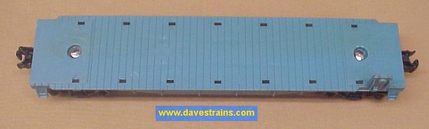 File photo showing the unusual teal-blue flatcar and the more common baby-blue version.
