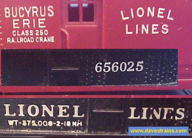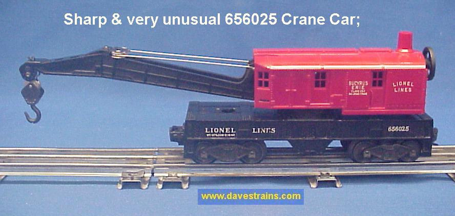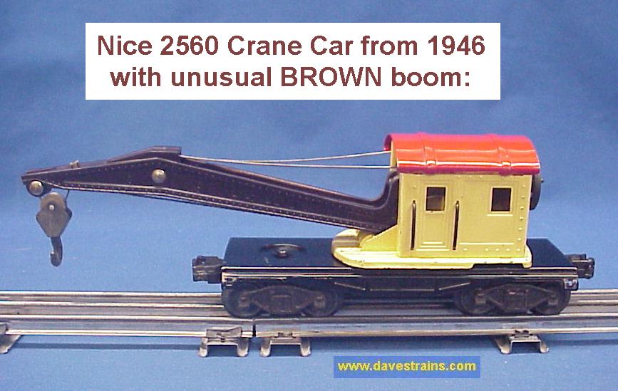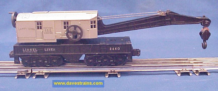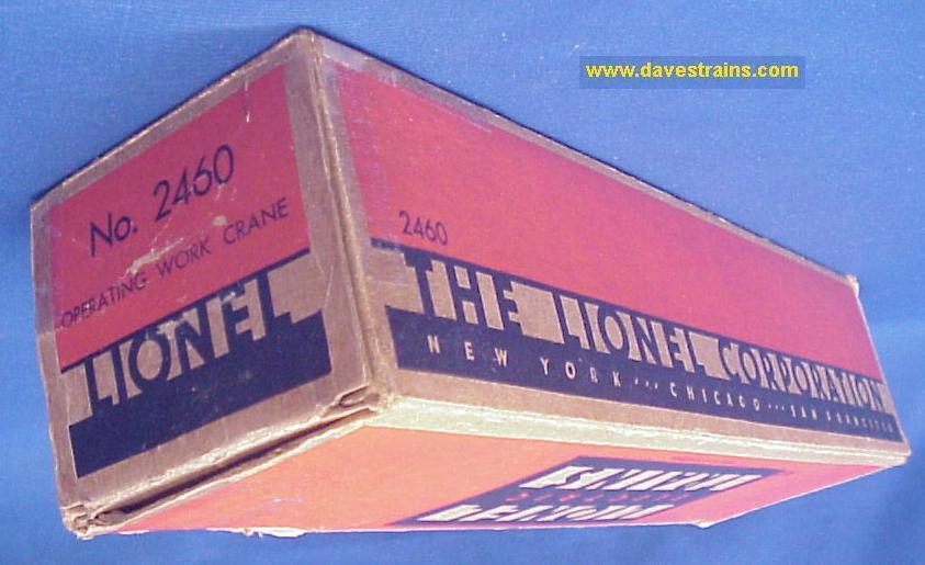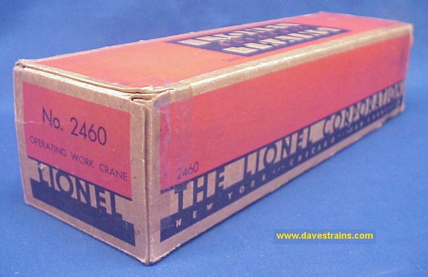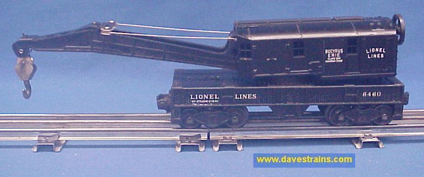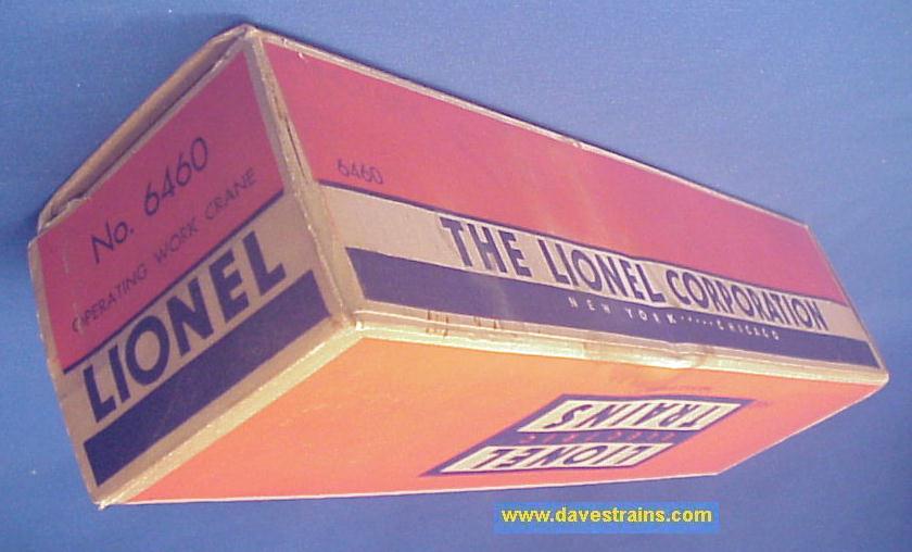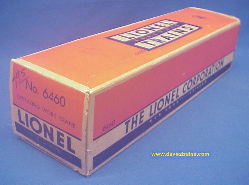 The 6460 Crane Car was sold from 1952 to 1954 but the ("Middle Classic" / non "OPS") box and the couplers (with engraved knuckle tops) help to date this car as 1954 production.