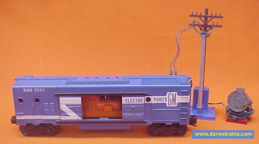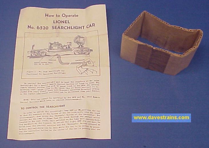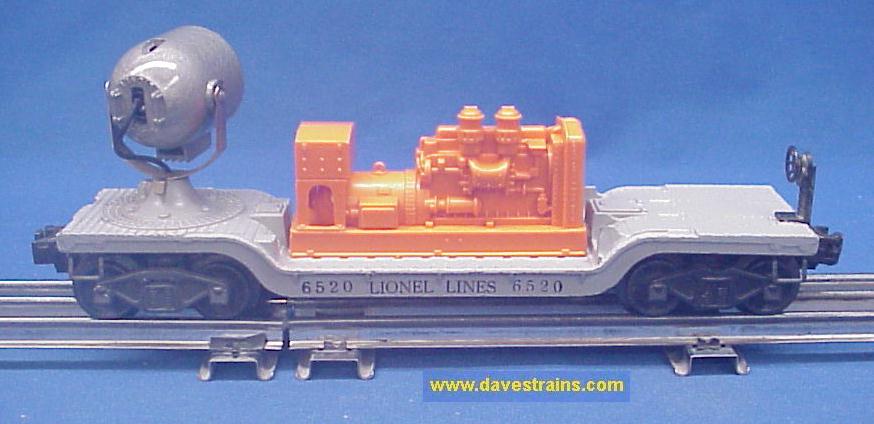 This sturdy and realistic-looking work car has a diesel motor assembly that modeled a General Motors generator. It is a perfect car for nighttime operations on a layout. The box is decent and the car is one of the nicest 6520 Searchlight Cars we have ever had!