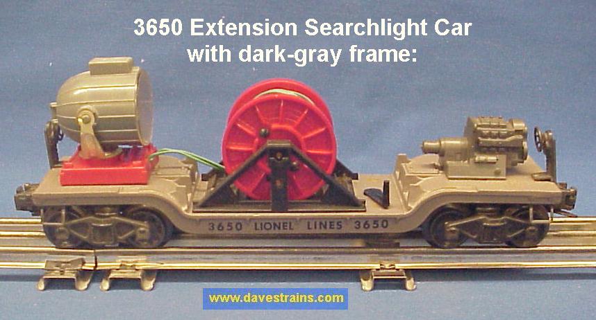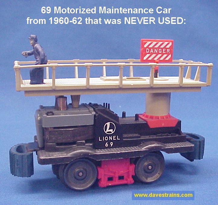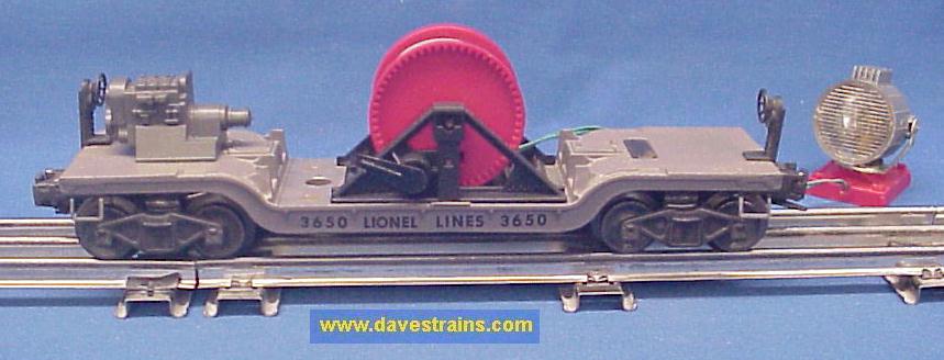 This page contains our current inventory of Postwar Lionel railroad work cars. Included here are inspection cars, ballast tampers, burro cranes, fire cars, gang cars, maintenance cars, tie-jectors, track cleaner cars, snow plows, crane cars, searchlight cars, log dumps, coal dumps and barrel cars plus other specialized pieces of rolling stock that are used for railroad maintenance and upkeep. Boxcars, refrigerator cars, stock cars, most flatcars, gondolas, hoppers, tank cars and vat cars are located on our Freight Cars web page. Cars from the "Space & Military" Series are shown on our Space & Military Cars web page and all cabooses and work cabooses are located on our Cabooses web page.