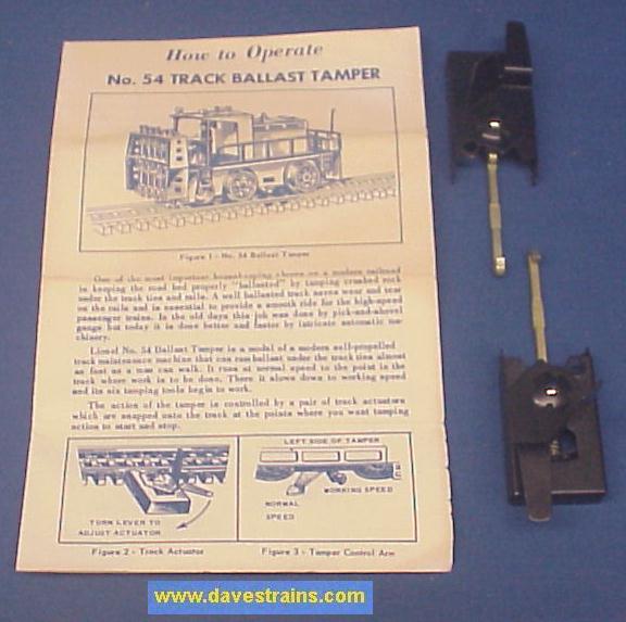 Has the original instruction sheet #54-60 dated 10/58 (creases, tears & discolored) and the original pair of track actuators.