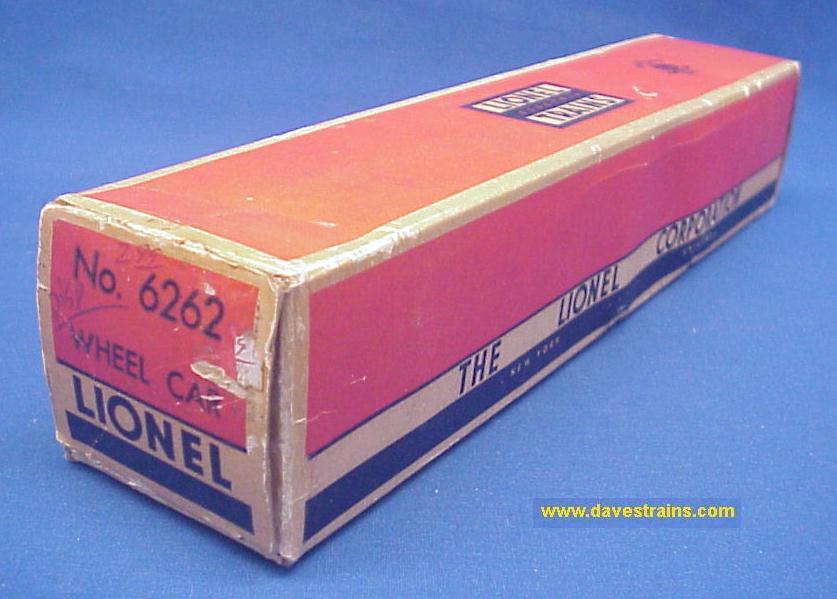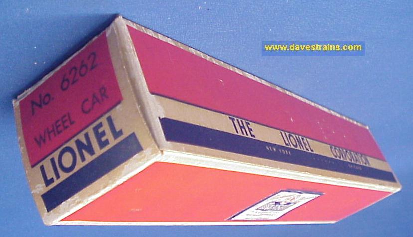 A few imperfections but this box is complete, clean, square and sturdy -- plus there is no tape anywhere! The 6262 box is very hard to find nice; usually the box is ripped apart from the inside because of the weight of the wheel sets, the steps catching and the trucks turning while trying to remove the car.
