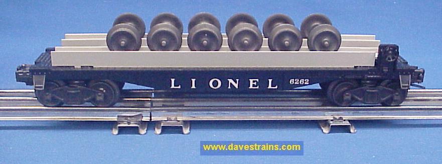 No, not just any wheel car -- this is the one with the RED body from early 1956: has white, heat-stamped lettering and bar-end trucks with tab couplers plus a gray superstructure (rack) and the correct load of six unused wheel sets.