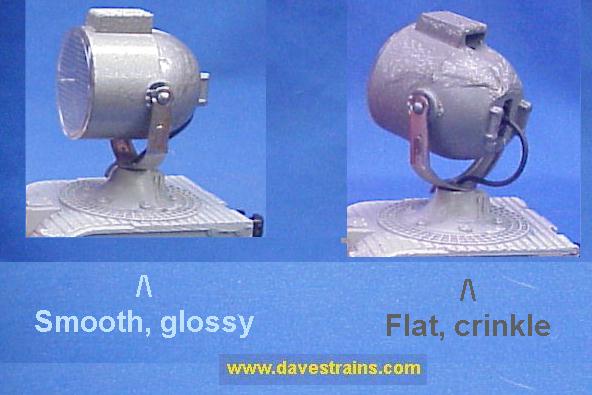 File photo showing the smooth glossy-gray searchlight housing and the common crinkle flat-gray housing.