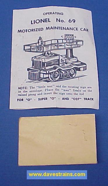 Has the original instruction sheet #69-14, dated 8/60 (minor stains, creases) and the original plain envelope for the sign and man.
